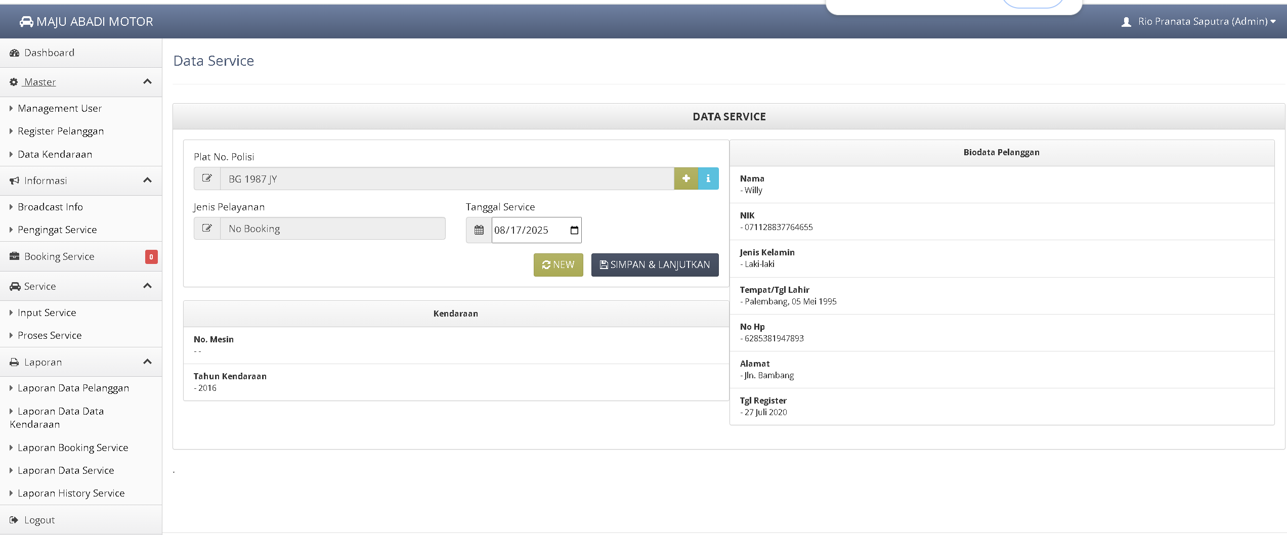 APLIKASI SERVICE KENDARAAN – V1