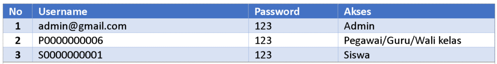Username dan Password Login Aplikasi :